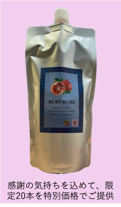希釈してザクロジュースとしてお飲み頂くのも良いですし、カクテルやお料理にもお使い頂けます。是非、スーパーで売られているザクロジュースと飲み比べてください。その美味しさは格別です。Ruby Rushに関する詳しい説明は、当社ホームページ(https://smilelink.jp)をご覧ください。